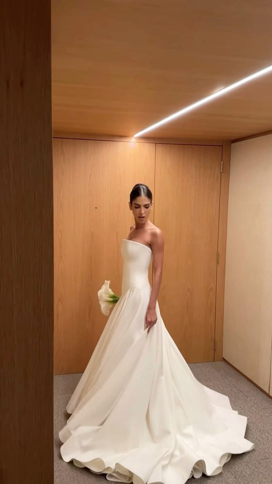 Vintage A line Strapless Long Simple Wedding Dresses S6790