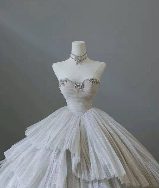 Vintage A Line Ball Gown Tulle Beaded Evening Dresses S7161