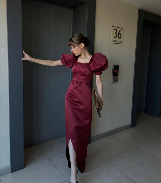 Vintage Puff Sleeves Sheath Prom Dress,Elegant Prom Gown S5850