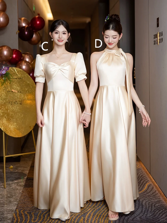 Champagne satin slim waist elegant ball gown, bridesmaid dress R5995