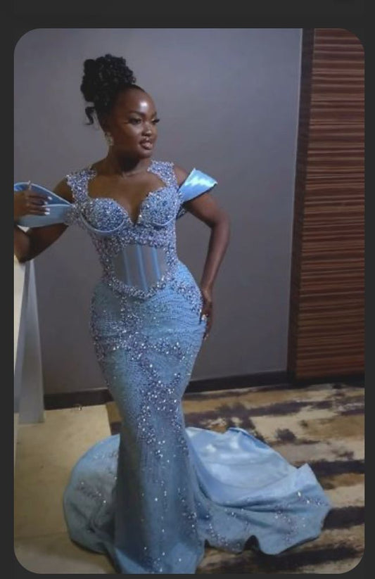 Blue Mermaid Long Prom Dresses, Evening Gown For Black Girl S6802