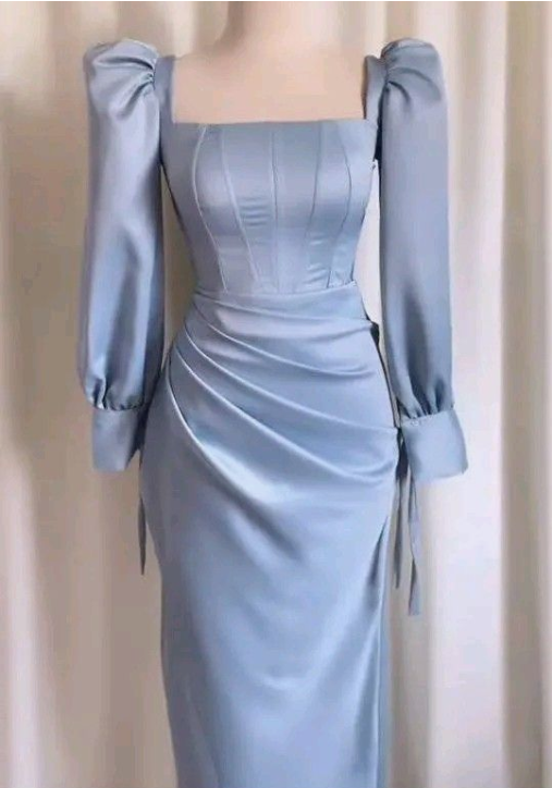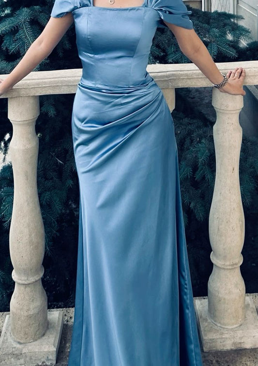 Sky Blue Satin Long Evening Dress Party Dress Prom Dress S6698