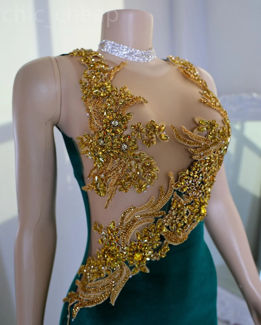 Beaded Crystals Dark Green Velvet Mermaid Prom Dress for Special Occasions S6597