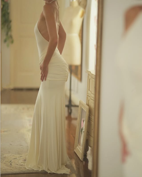 Open Back Halter Neck White Party Prom Dresses Long Evening Dress S6596