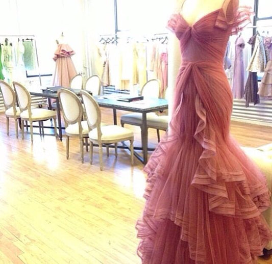 Pink Tulle Party Prom Dresses Long Evening Dress S6598