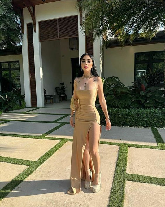 Sexy High Slit Mermaid Spaghetti Straps Long Evening Prom Dresses S5212