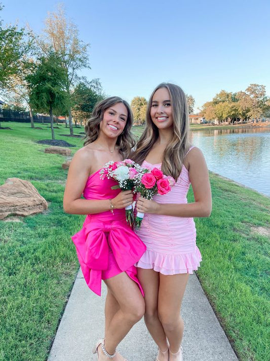 Pink Cocktail Dresses A-Line V-Neck Long Sleeve Shiny Sequin Homecoming Dresses S2042