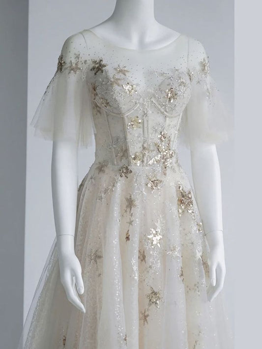 Light Tulle Sequin Tea Length Prom Dress, Tulle Formal Dress S6335