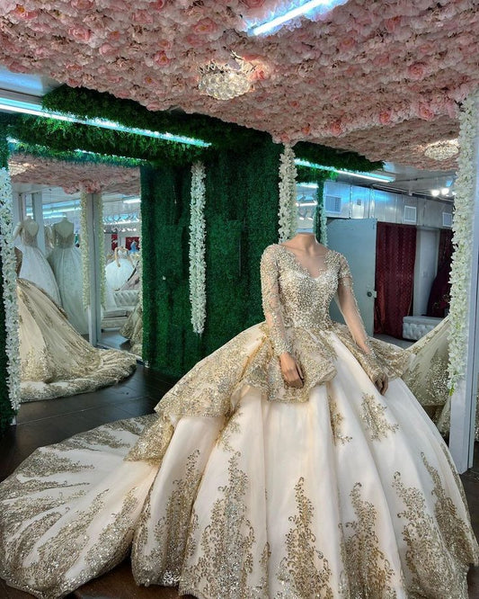 Champagne Beaded Princess Dress, Gorgeous Wedding Dress, Dreamy Bridal Ball Gown S6086