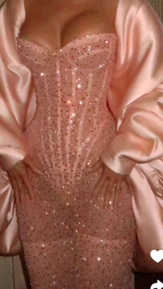 Classy Sheath Strapless Sequin Floor Length Pink Slit Prom Dresses Prom Gowns S6077