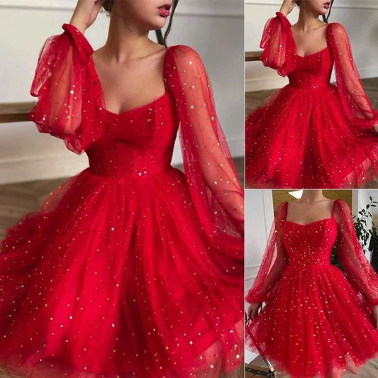 A-Line Tulle Evening Dresses,Long Sleeves Princess Gown Homecoming Dress S651