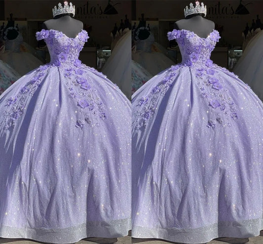 Lavender Ball Gown Off The Shoulder Prom Dress With 3D Flowers S603