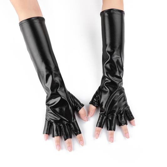 Half Finger Patent Leather Stretch Gloves Holiday Party Cosplay Costume Decoration Mid-Length S6264