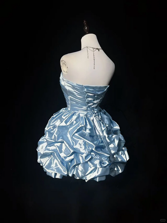 Blue tube top waist cute bud skirt short dress homecoming dress R4900