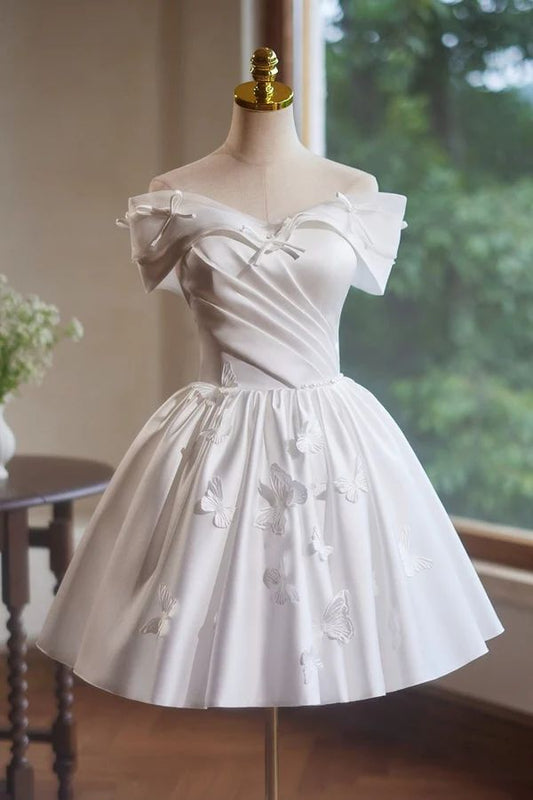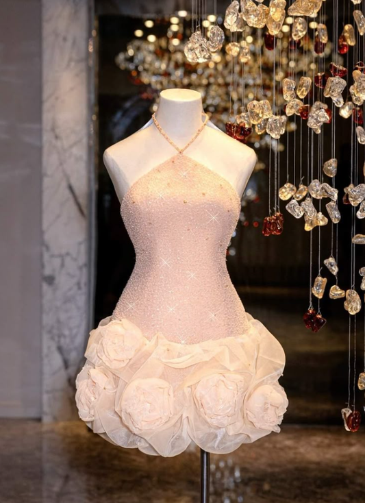 White halter neck slim waist flower bud skirt short skirt homecoming dress R4633