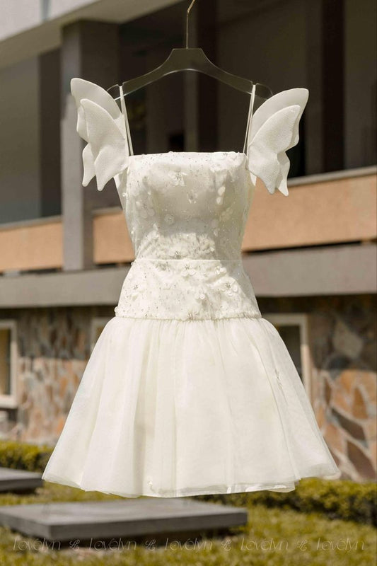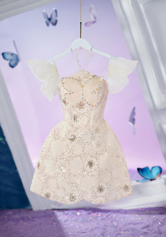 White suspenders slim waist cute playful A-line mini skirt homecoming dress R4644