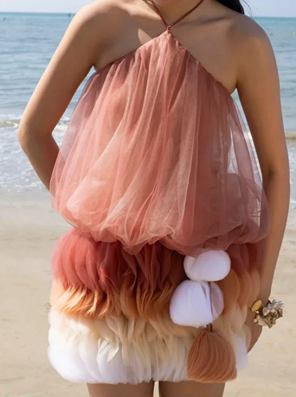 Brown tube top with slim waist and irregular hem short skirt for homecoming dress R4530