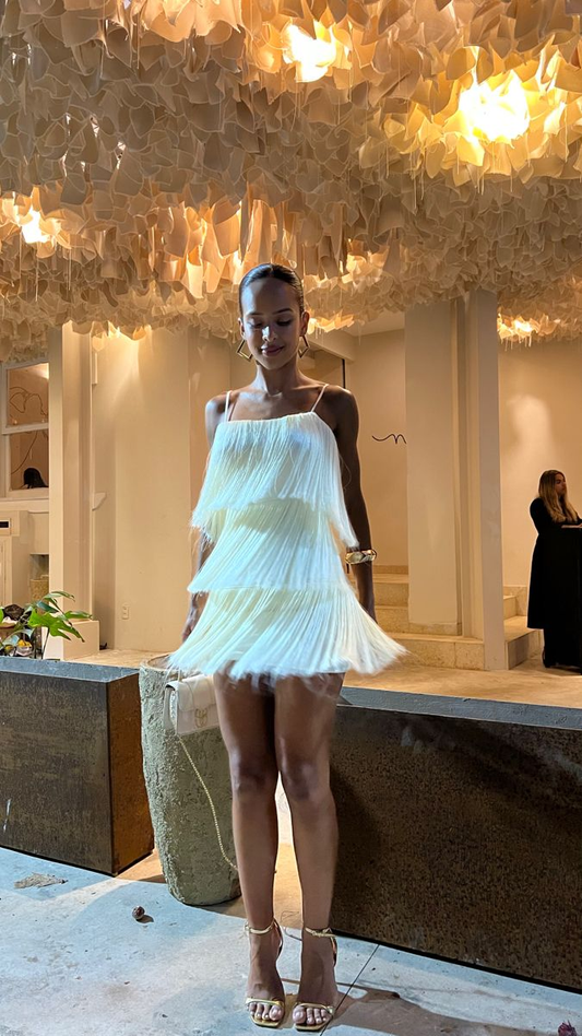 White suspender tassel sexy short skirt homecoming dress R5535