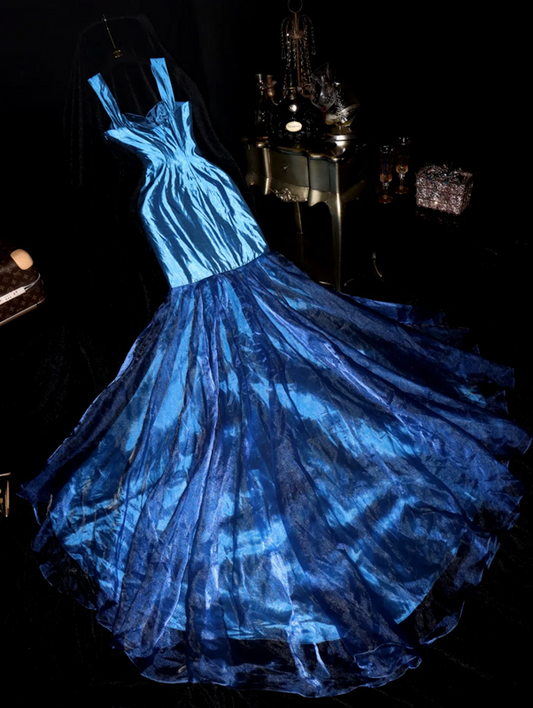 Blue strapless, fitted, bodycon mermaid long ball gown R6998