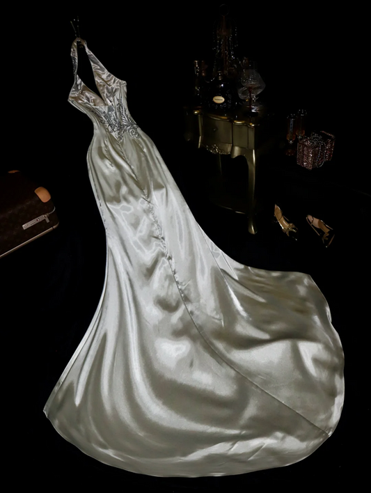 Light champagne-colored strapless, fitted, sexy long ball gown R6967