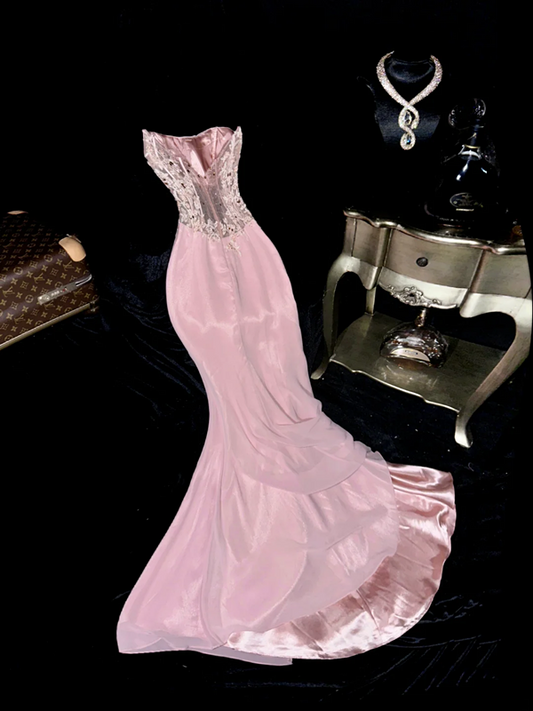 Pink strapless fitted waist elegant fairy long ball gown R6951