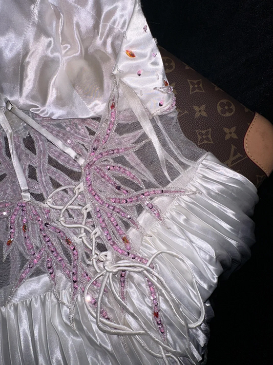 White strapless fitted waist tulle dress, princess-style long ball gown R6914