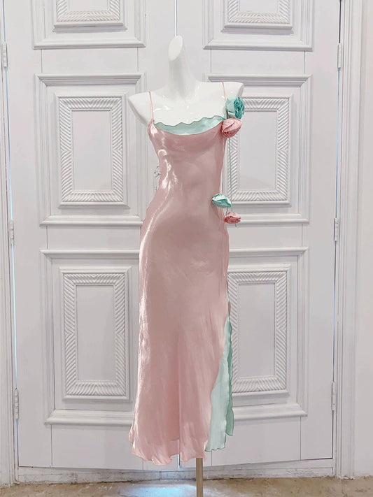 spaghetti straps flower dress new long party dress S6055