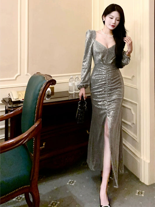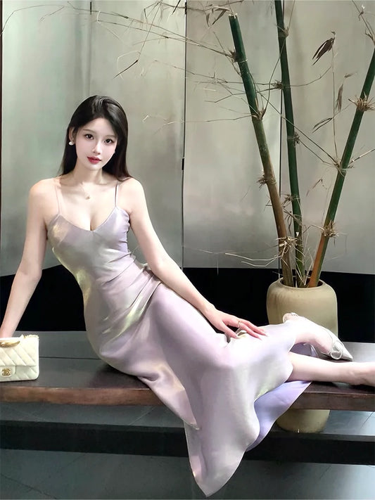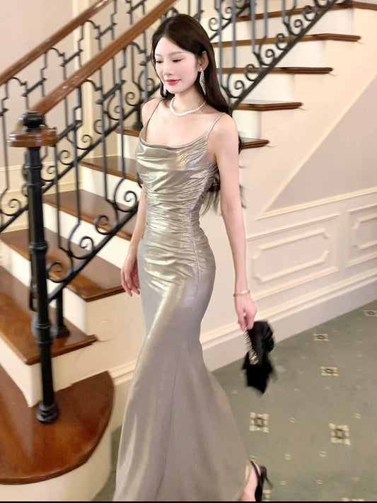 Birthday dress sexy V-neck halter dress satin celebrity party dress S6012