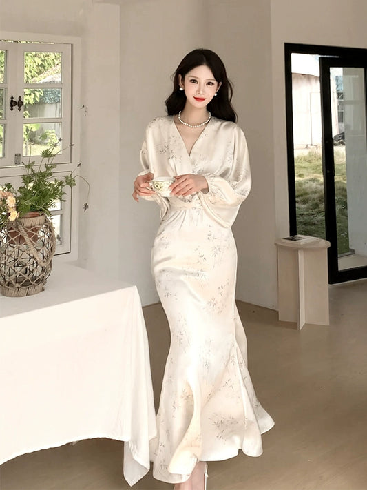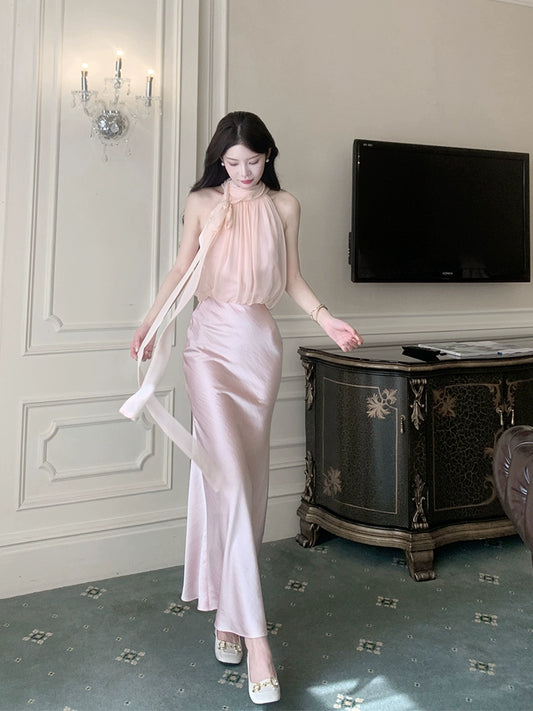 sexy V-neck long dress cross satin dress evening party dress S5984