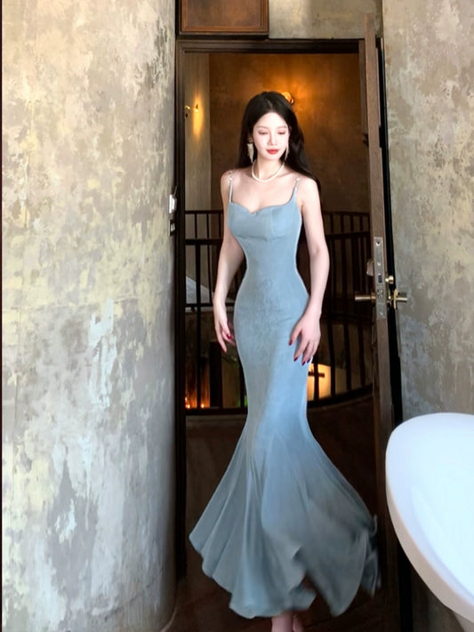 Princess Mermaid Party Dress Women's Velvet Evening Dress S5977
