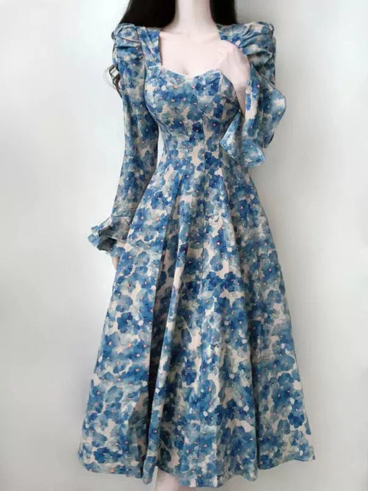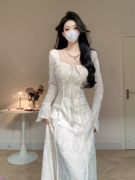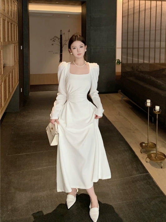 Square neck white long-sleeved dress for women birthday dress engagement dress S5881