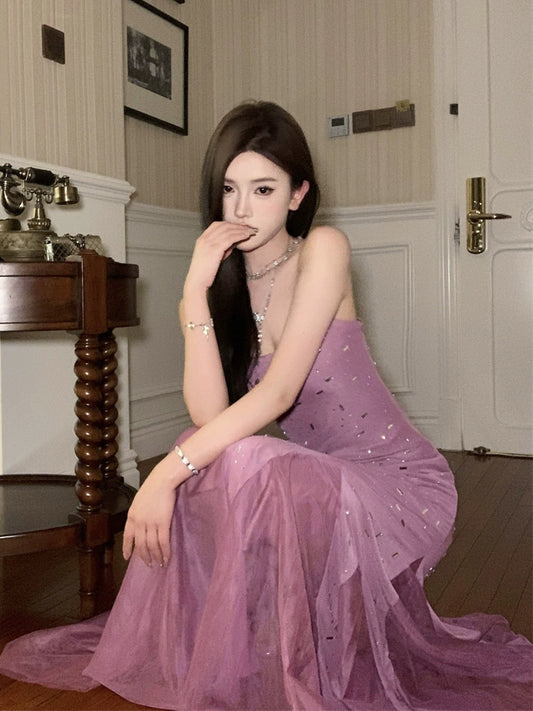 beautiful pink dress birthday dress long mermaid party dress S5880
