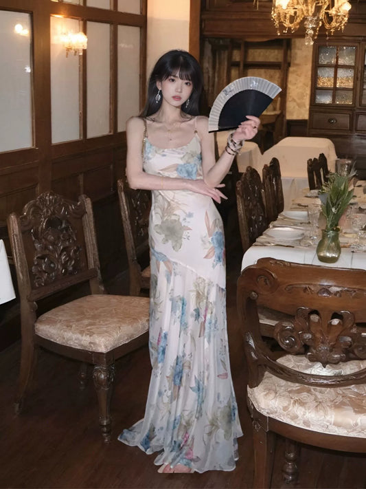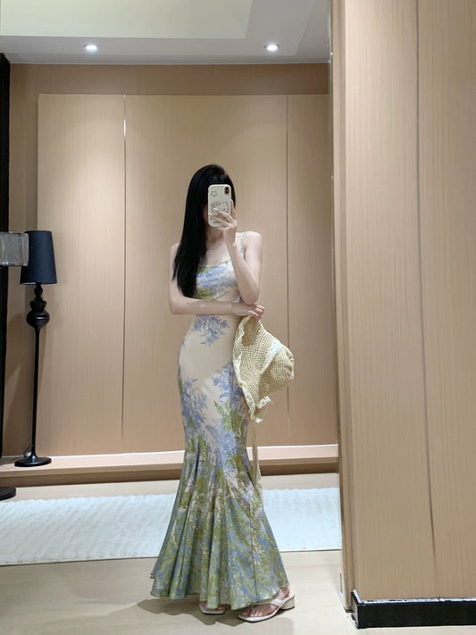 Apricot sleeveless dress for women mermaid long party dress S5904