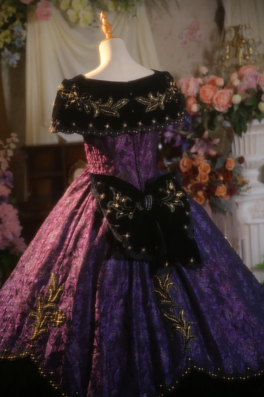 Purple vintage patterned fitted waist ball gown/bridal dress R7273