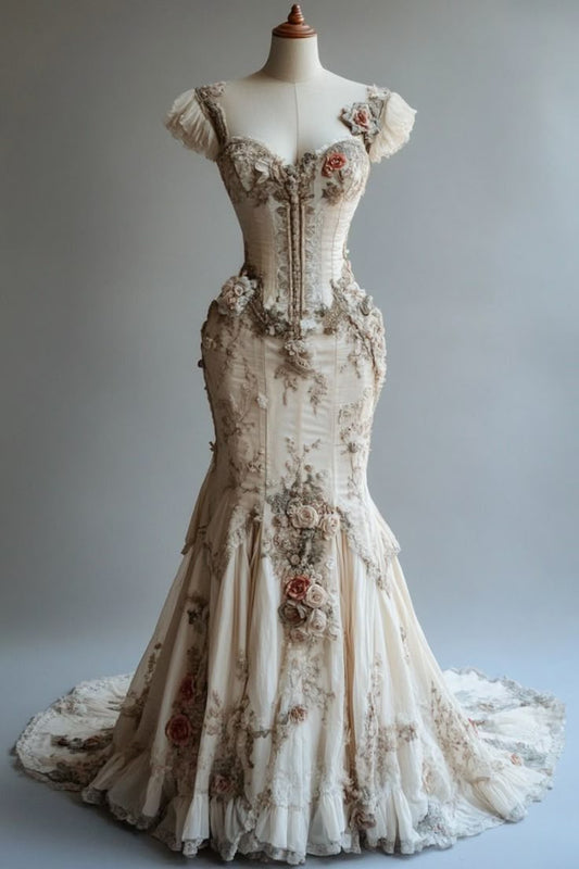 White tube top 3D flower waist slim fit hip long skirt, prom dress R5313