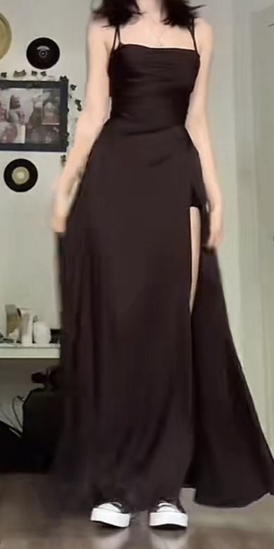 Elegant A Line Straps Floor Length Dark Brown Slit Prom Dresses S6400