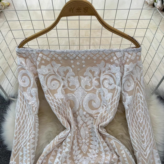 party evening dress,long-sleeved one-shoulder off-shoulder dress S4004
