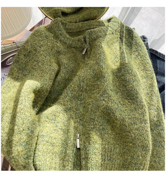 Vintage-style round-neck sweater jacket for women jacquard long-sleeved knitted cardigan S4796