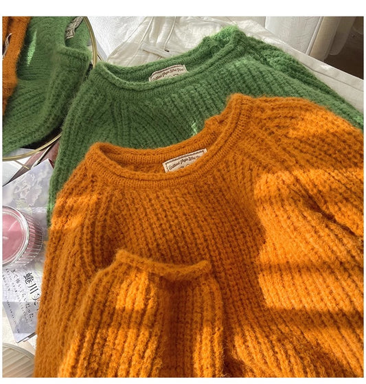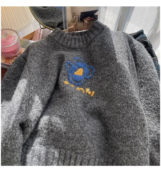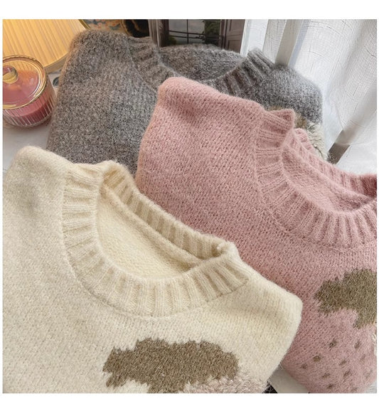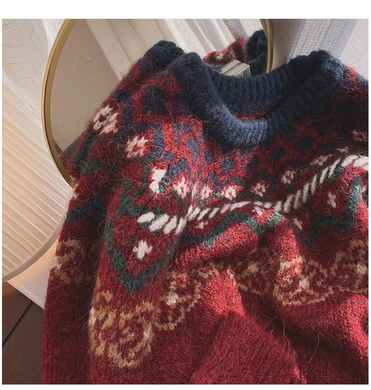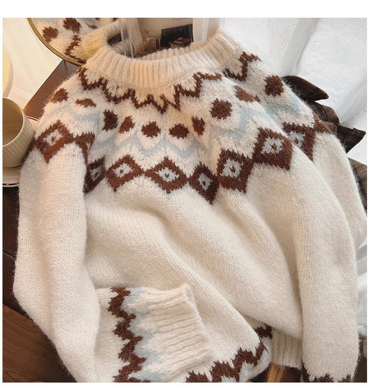 vintage style jacquard round neck sweater for women long-sleeved sweater trendy S4802