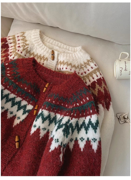 Christmas red sweater jacket for women long-sleeved knitted cardigan S4791