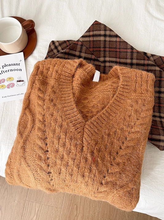 chic soft knitted casual V-neck long-sleeved knitted sweater S4755