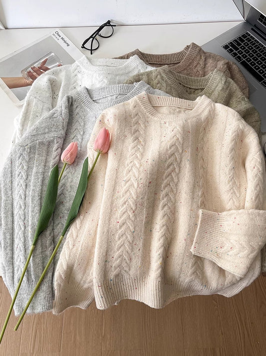 solid color round neck sweater soft knitted sweater top S4754