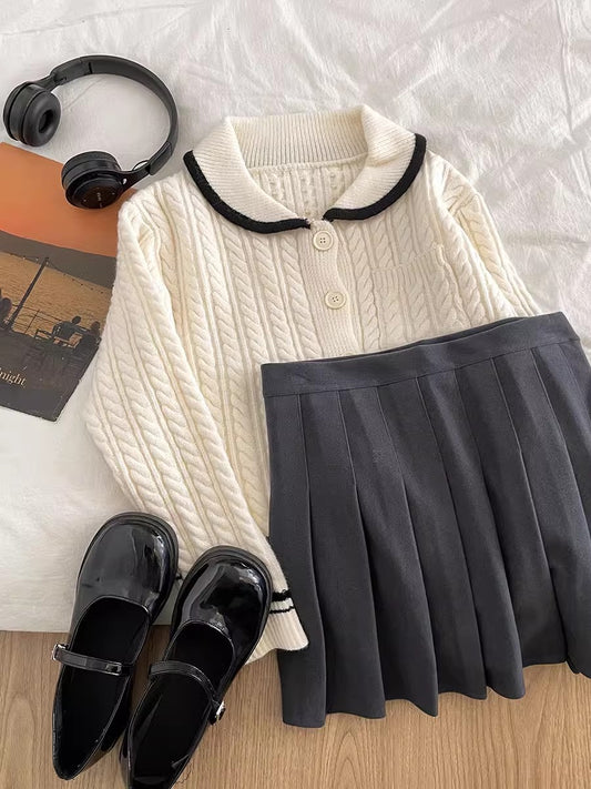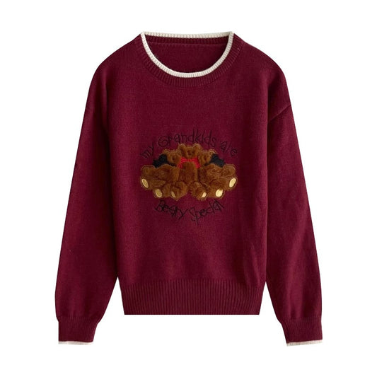 cartoon embroidered jacquard sweater fashion casual knitted top S4756