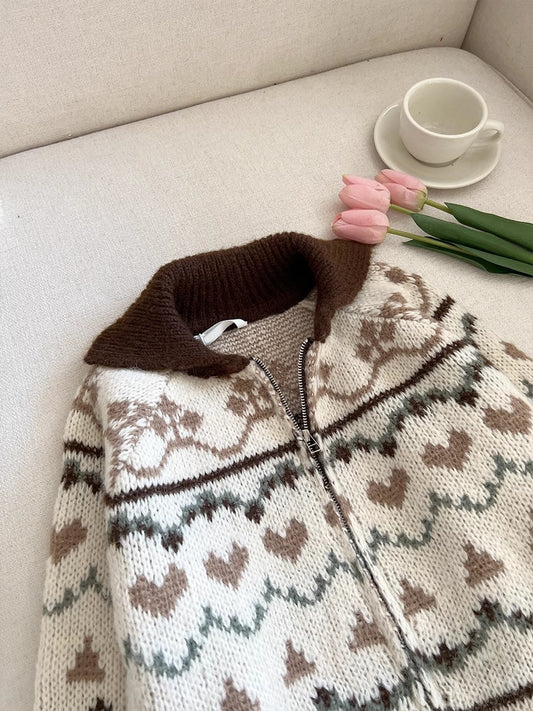 Soft jacquard zipper knitted top S4763