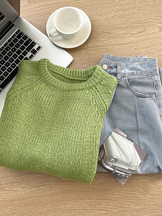 soft casual round neck long sleeve outer sweater green sweater S4753
