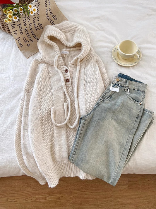 soft hooded knitted sweater top S4760