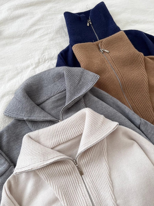 double zipper knitted cardigan long-sleeved sweater jacket S4764