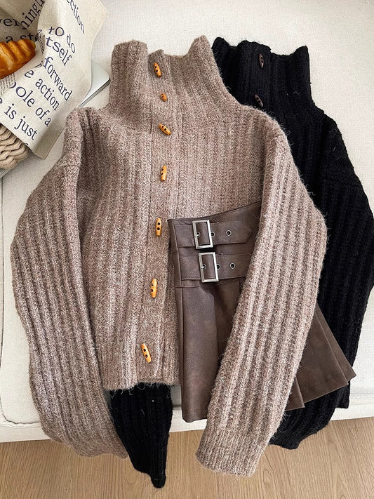 round neck colorful button sweater long-sleeved sweater jacket S4759