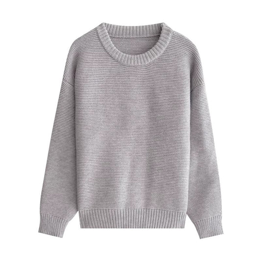 solid color simple long-sleeved round neck knitted sweater S4768