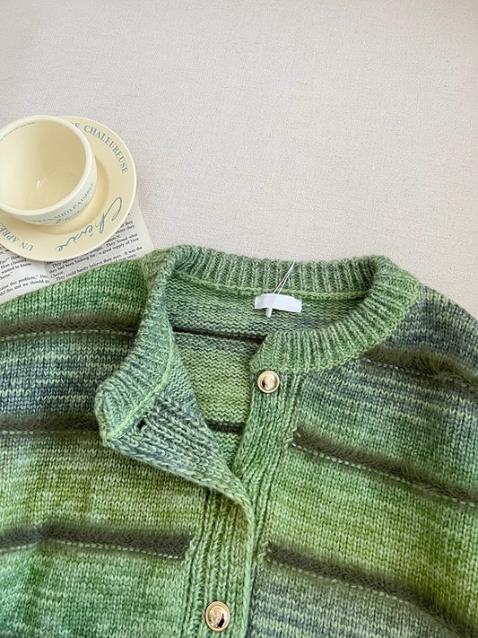 Sweet V-neck striped sweater coat long-sleeved knitted cardigan S4769